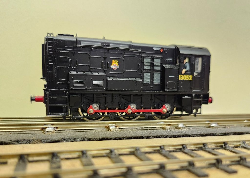 Mae Luke wedi ail-olwyno’r shunter BR hwn gyda setiau olwynion P4 Ultrascale sy’n cael eu gosod. Mae’n rhedeg yn dda iawn ar ôl i’r hybiadau gael eu haddasu i’r lled newydd.