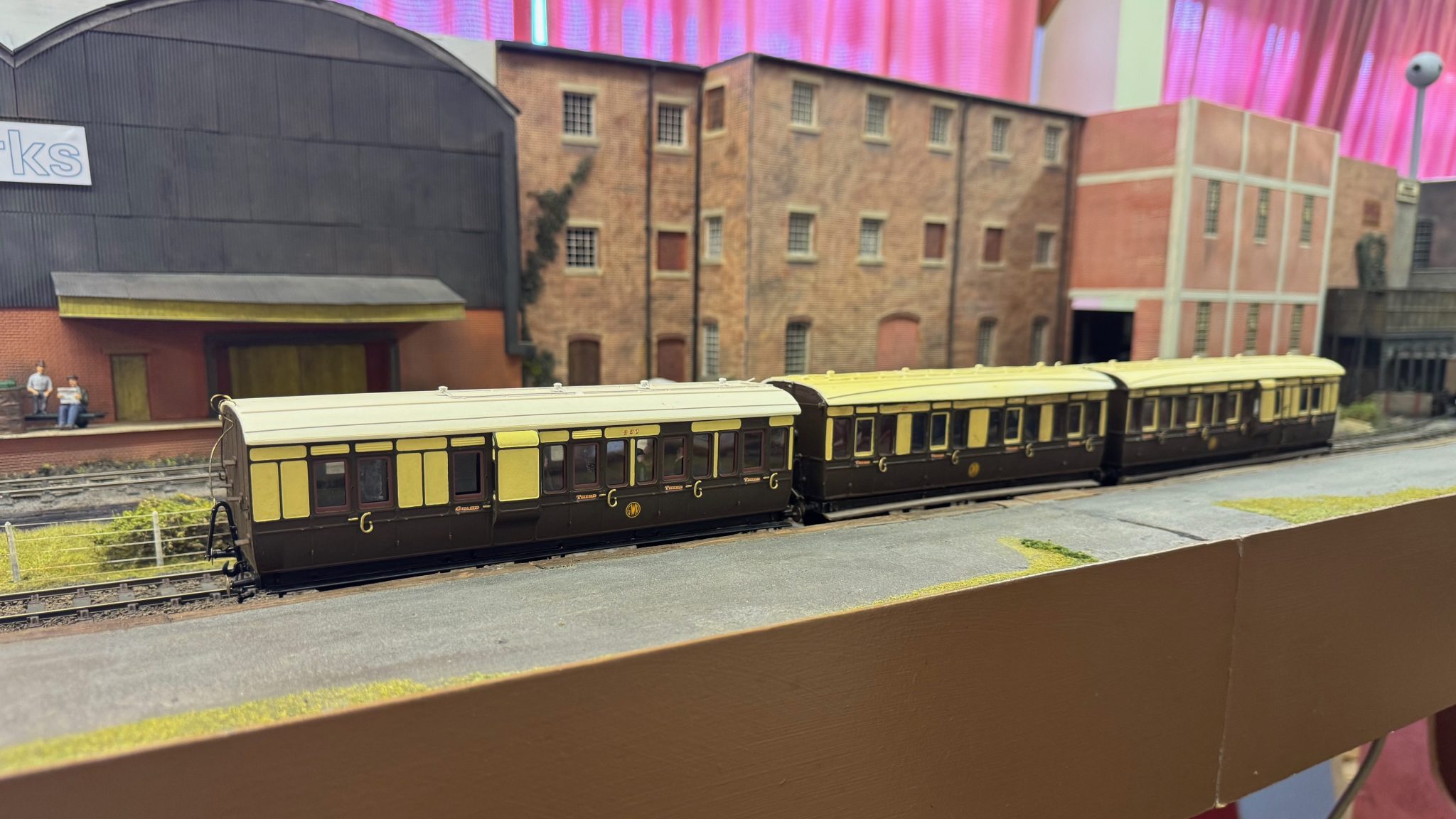 Yn ystafelloedd y clybiau, fe wnaeth Luke ddidoli rhai cerbydau 4mm a allai fod wedi rhedeg ar LMJ a’u rhoi at ei gilydd i ffurfio’r gwasanaeth rhwng Casnewydd ac Aberhonddu ar Gwm Carno. Byddai tanc cewyll neu Collett Goods yn locomotif mwy nodweddiadol.